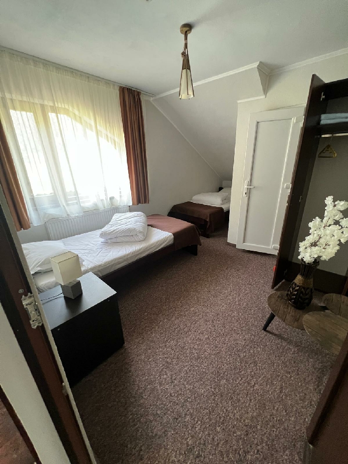 -Two apartments with two rooms and a shared bathroom, each room has a double bed.
