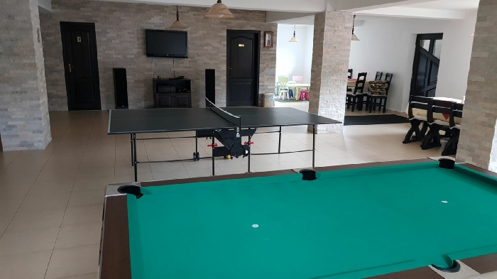 In the pension there is an entertainment lounge (22 seats with audio-video system, video projector, screen, games room, pool table, tennis table, darts, children's playroom, bathrooms), and in the spacious courtyard you can benefit from the land sports, children's playground with swings and slides and parking spaces.