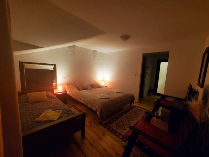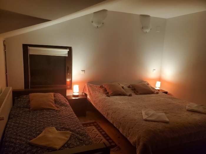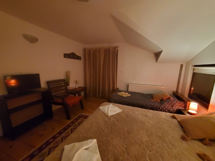 The pension has a large living room with fireplace, 2 sofas and a corner, 2 service bathrooms.