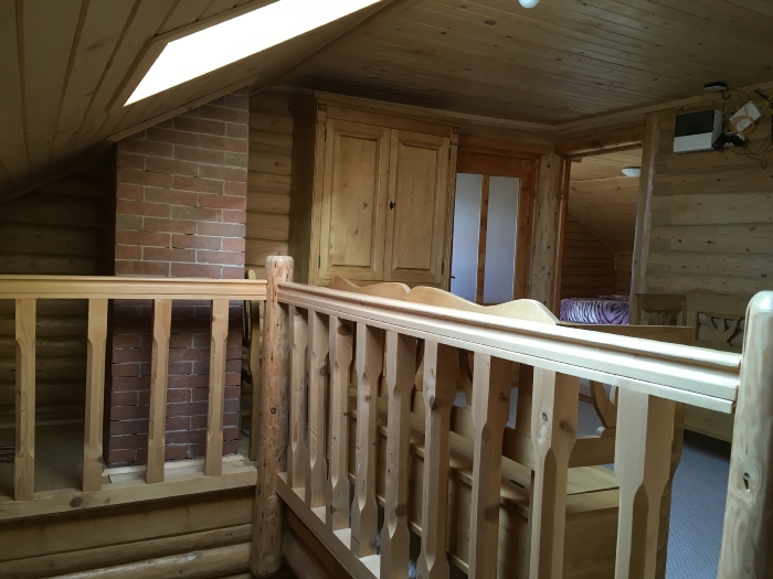 Scala interna, bagno al piano superiore, bagno al piano superiore con cabina doccia e hall al piano superiore con panchine e 4 camere da letto ognuna dotata di TV, comodino king size e piumone e biancheria di qualità.
