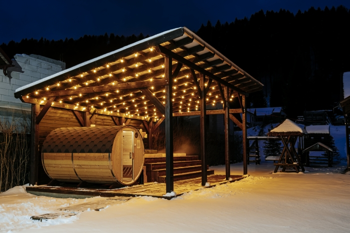 Relaxati-vă împreună cu cei dragi în ciubărul aburind și în sauna bine încălzită.
