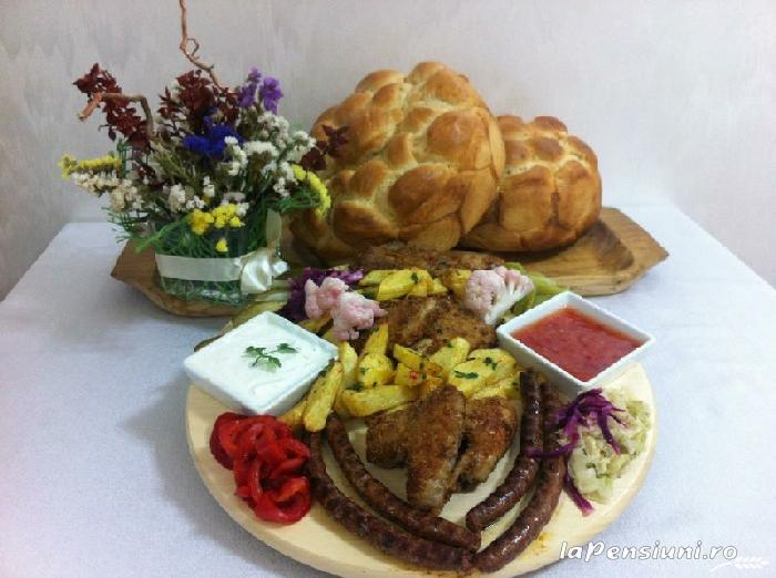 Meniul este traditional romanesc, cu accente pe specificul local, dar si elemente de bucarie internationala.