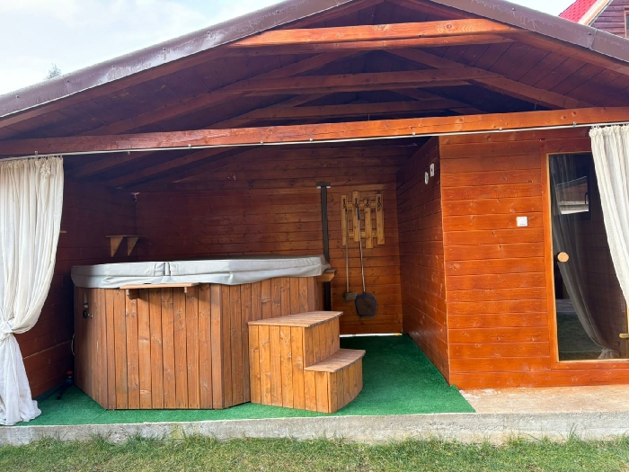 Cabana dispune de bucătărie utilata, TV în living, loc de luat masa, încălzire centrala, curte spațioasă cu doua foișoare, grătar echipat, leagăn, două balansoare, tobogan, loc de parcare și ciubăr pentru relaxare.