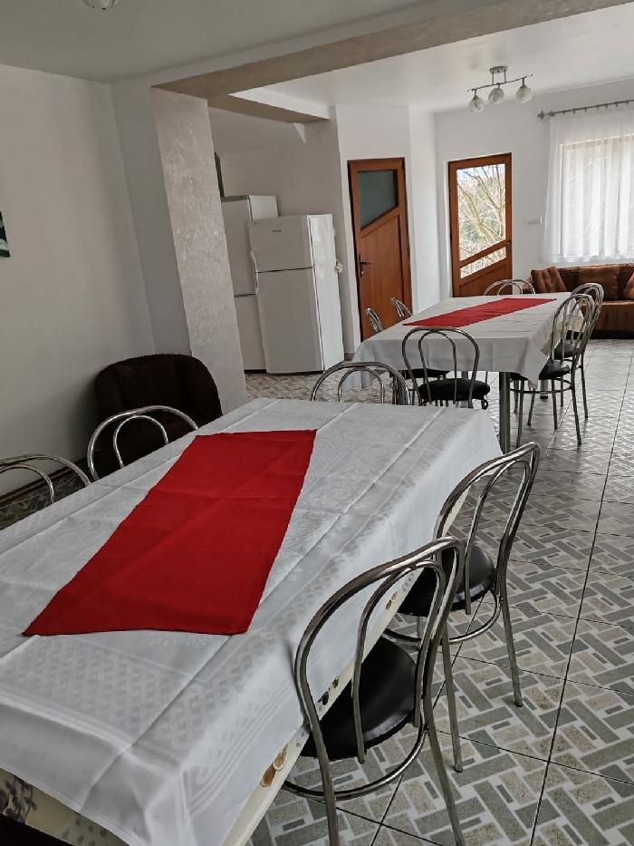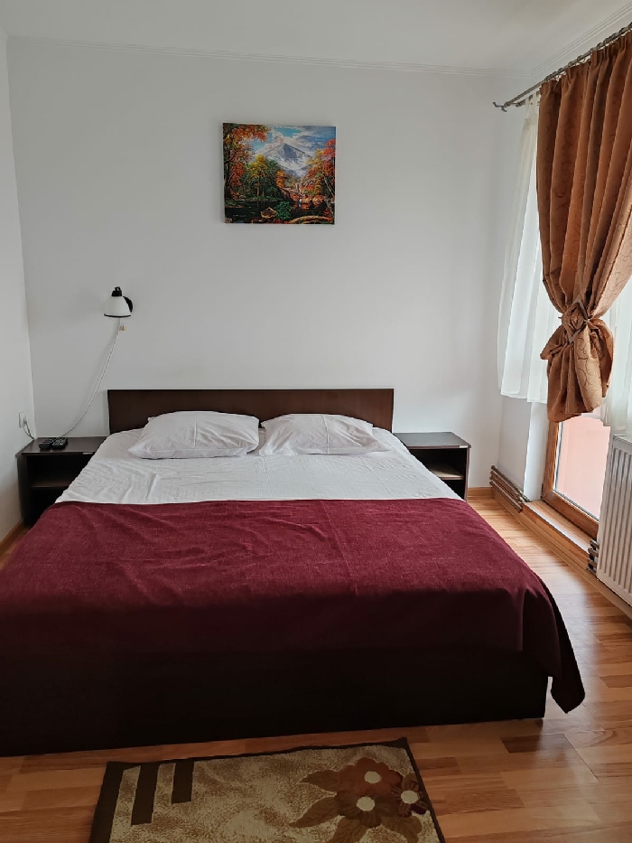 Oferim doritorilor de liniste si relaxare o locatie cu sase dormitoare, un living spatios, curte generoasa cu foisor, gratar, balansoar, loc de joaca pentru copii, zona de sezlonguri si hamace, dar si terasa cu priveliste spre Muntii Piatra Craiului si Muntii Bucegi. Parcarea este asigurata, in curtea pensiunii.