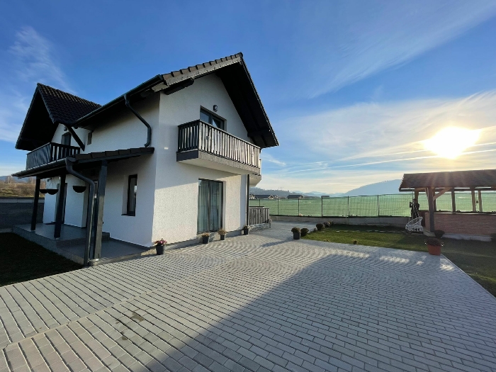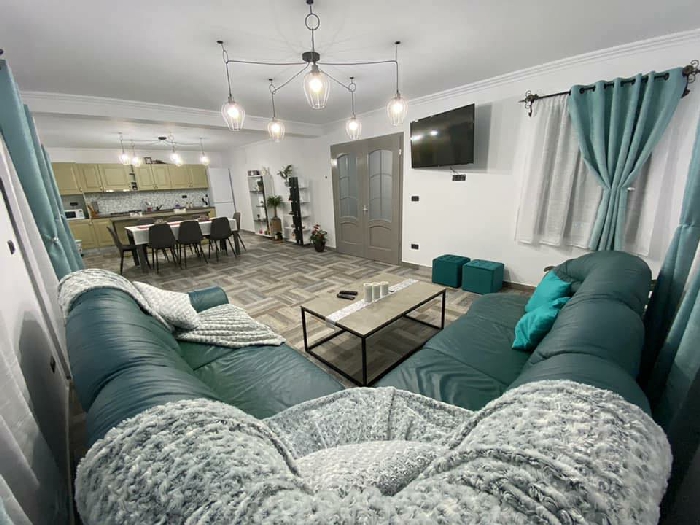 Casa are 4 dormitoare cu baie proprie, un living mare cu bucătărie complet utilată, curte și parcare. Se închiriază integral. Ciubarul este contracost si doar la cerere.