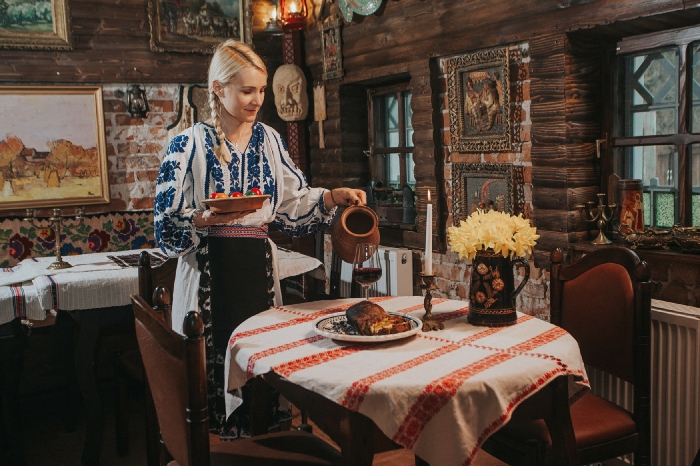 Gospodaria este compusa din doua locatii, aranjate cu mobilier vechi dar foarte bine intretinut, covoare taranesti, vitrine pline de obiecte vechi romanesti autentice (icoane, carti vechi, ceramica, costume populare, covoare si tesaturi vechi) din toate colturile tarii.