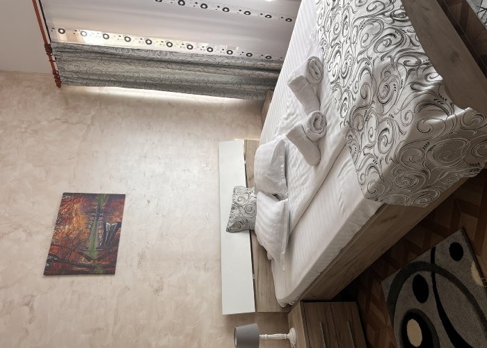 Caracteristici : 36 mp, 1 camera, Pat matrimonial, Baie in camera, Frigider |